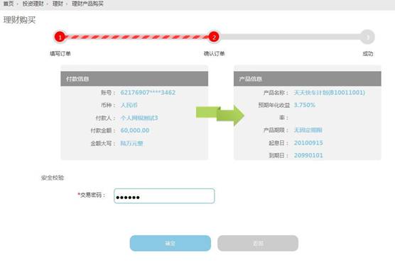 7. 在购买确认页面输入交易密码,如下图: