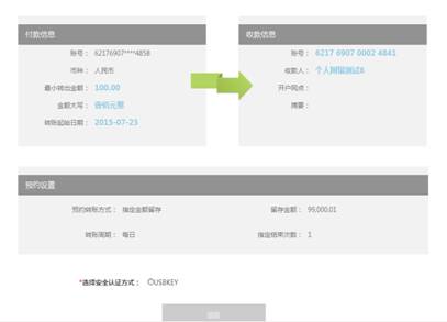 3.使用USBKEY或者文件证书方式进行安全认证,设置预约转账成功。